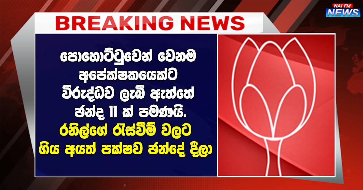 ඒ අනුව පක්ෂය විසින් ඉදිරිපත් කරන අපේක්ෂකයා ඉදිරි දින කිහිපය තුළ ප්රකාශයට පත් කිරීමට සූදානම් බව පක්ෂ ආරංචි මාර්ග පවසයි.